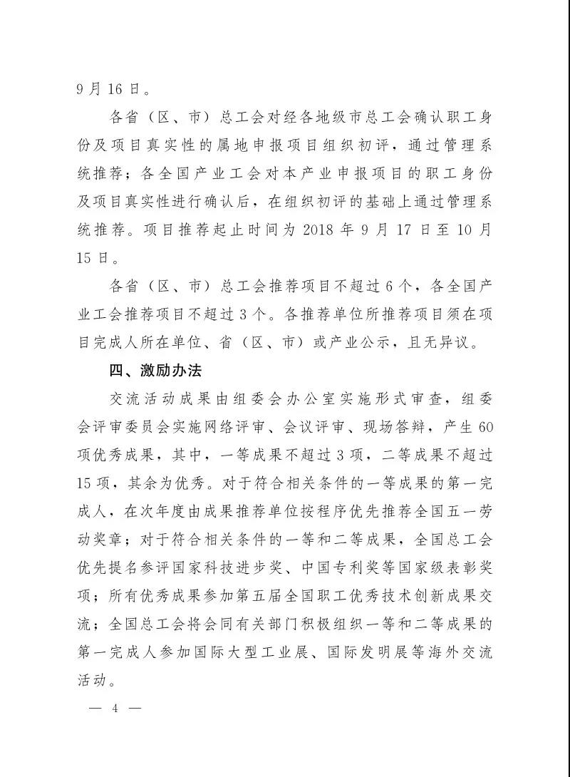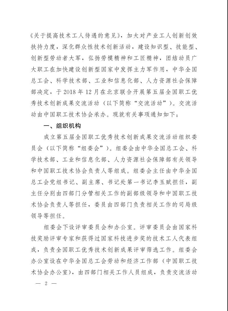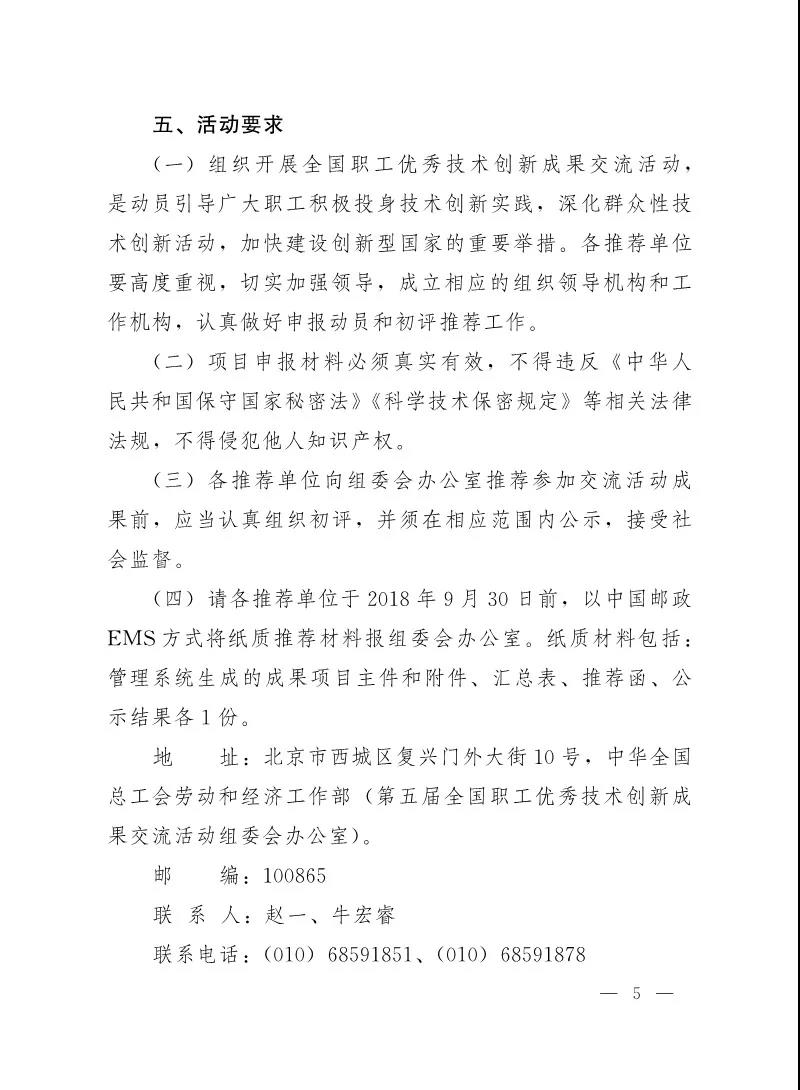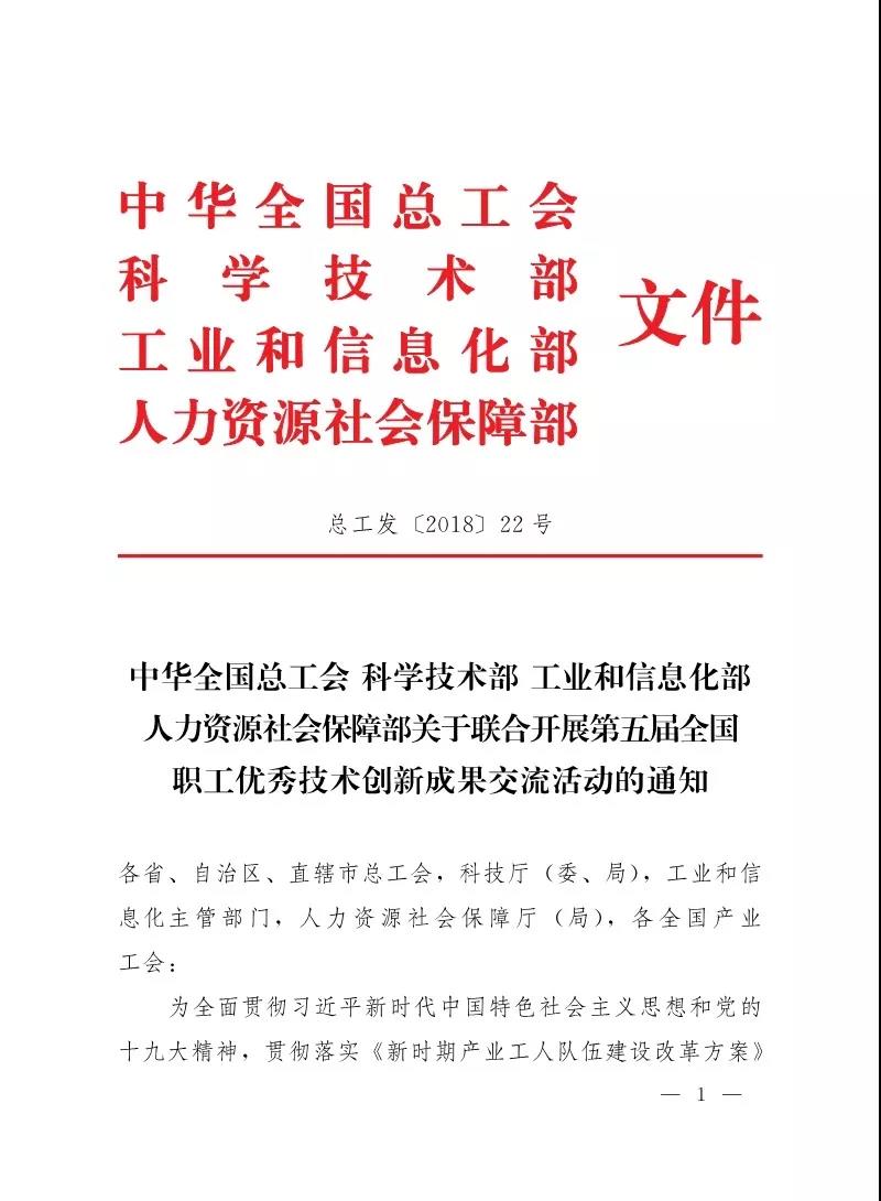 中华全国总工会科学技术部工业和信息化部关于联合开展第五届全国职工优秀技术创新成果交流活动的通知