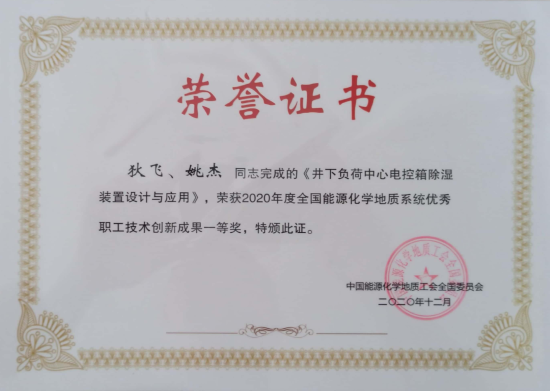 狄飞、姚杰荣获全国能源化学地质技术创新一等奖