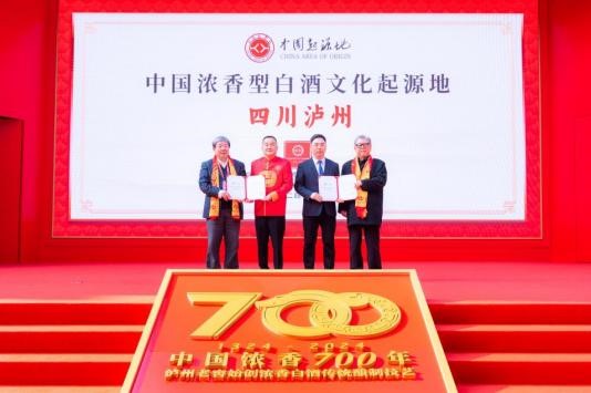 第十七届中央候补委员、中共中央宣传部原副部长、中央精神文明建设指导委员会办公室原主任、中国文联原党组书记胡振民和第十一届全国政协委员、国家文物局原党委副书记、副局长张柏分别向泸州市和泸州老窖颁发中国浓香型白酒文化起源地证书。