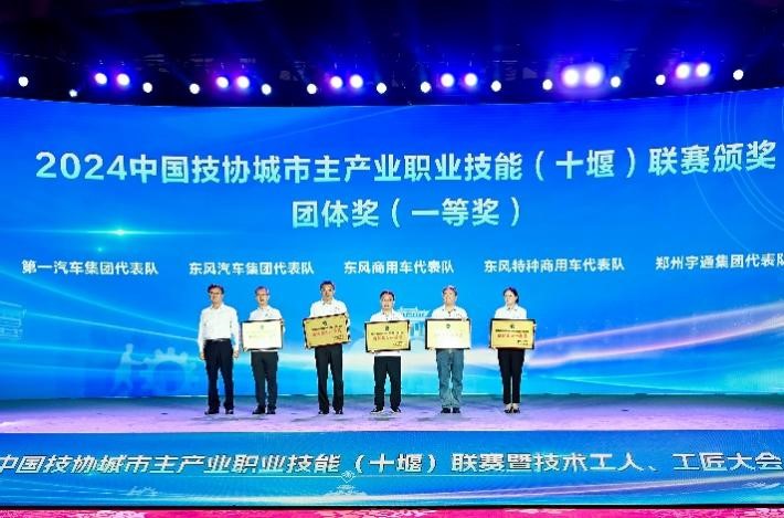 在前一天举行的2024中国技协城市主产业职业技能(十堰)联赛新能源汽车技术(商用车)竞赛上,各参赛选手经过激烈角逐,结果新鲜出炉。大会为获奖团体和个人颁奖。