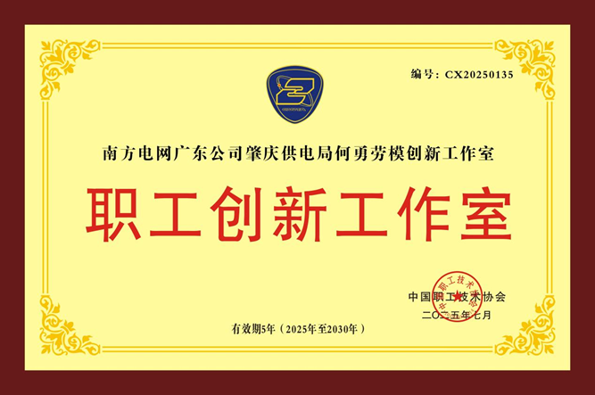 2025年7月,南方电网广东公司肇庆供电局何勇劳模创新工作室被命名为“中国职工技术协会职工创新工作室”。