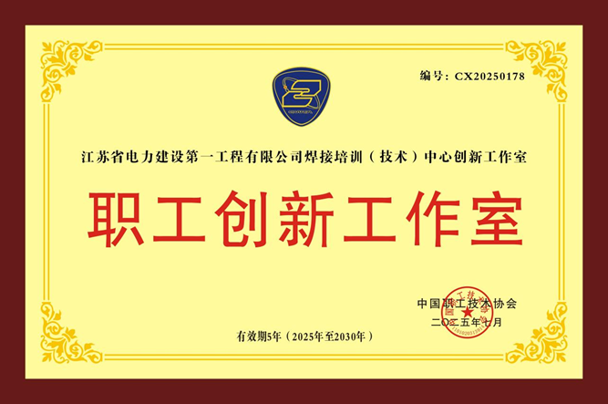 2025年7月,中国能建江苏电建一公司焊接培训(技术)中心创新工作室被命名为“中国职工技术协会职工创新工作室”。